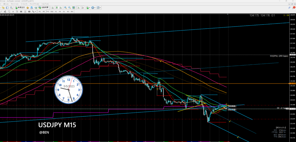 仲値前までドルが買われる動きがあるとは思いますが、限定的かなと。ドル円は下目線でええんでしょうね。ここから横軸があって欧州時間前あたりから下に掘ってくれたらええなと考えています。