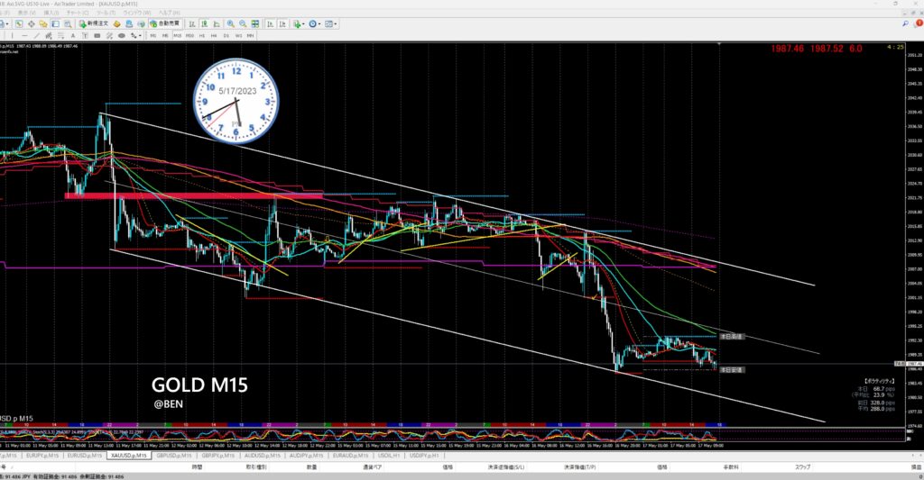 ここからどうなるか?一旦ショートカバーが入るのか、現在の1990ドルゾーン付近でレンジになってから安値が切り下げていきさらなる下落になるのか。答えは欧米時間なのか。いまのところはこんな感じで見ています。