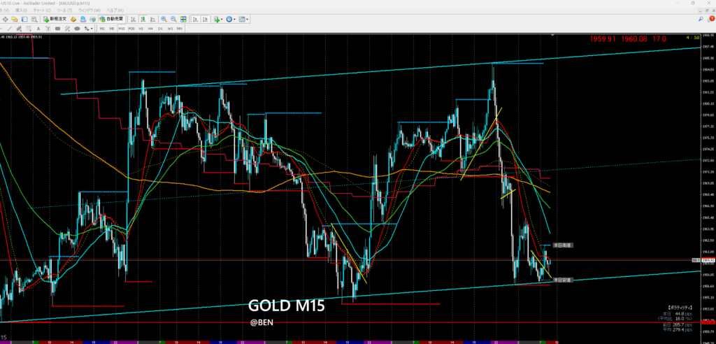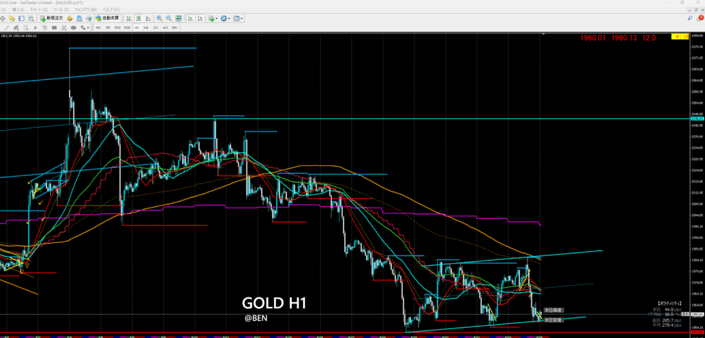クソポジ決済。別口座で少しゴールドショートしてるが、指標跨ぐが思案中。1954割れたら美味しいんやけどねー🤔 pic.twitter.com/QUHUZZ1C9a