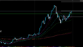 今朝はショートしたいなと思いつつチャートを見ています。軽く入ってます。直近高値でロスカットですね。様子見ていきます。調整は来るとおもうんですが。