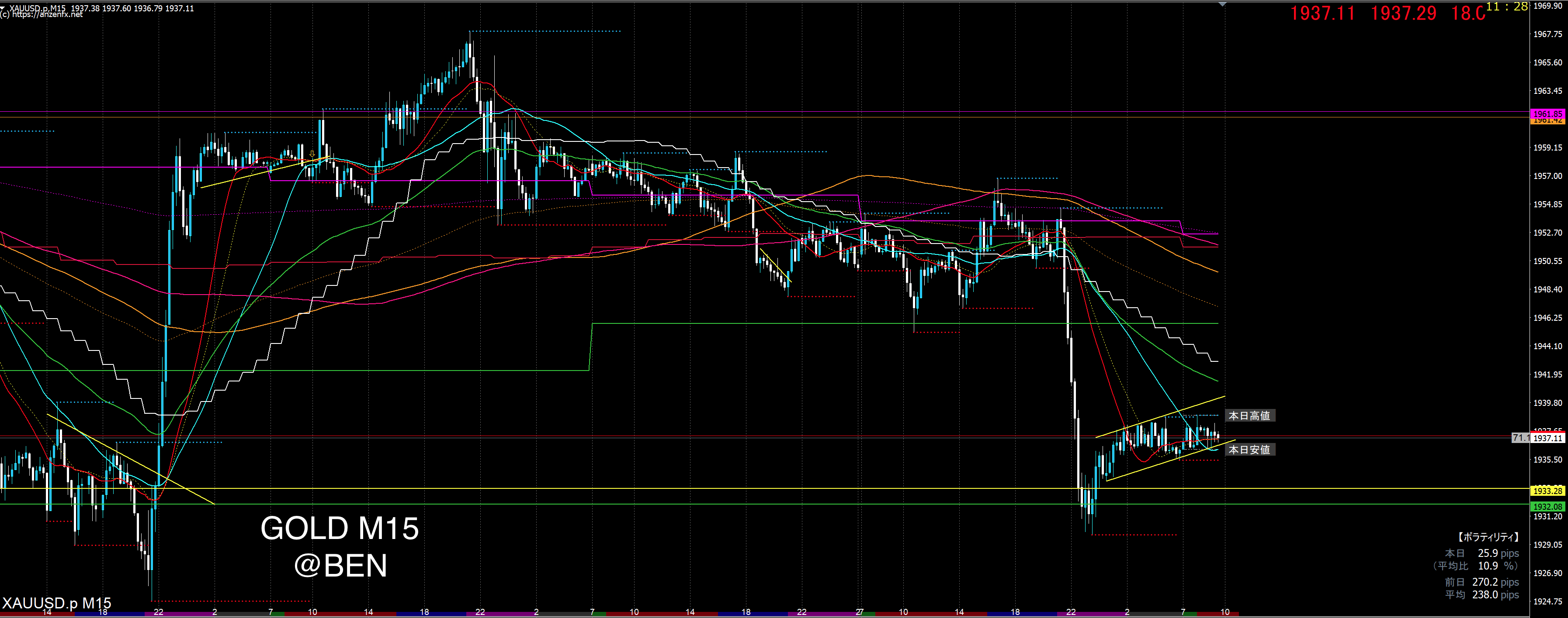 今朝しれっと早い時間に昨日の窓埋めが完了し上昇するも1930ゾーンが堅く、現在は1921ゾーン(窓)を割り込む流れになっているので、ニューヨーク時間にドル高へ振れたら1910ゾーンあたりまでいってしまうかもしれませんね。