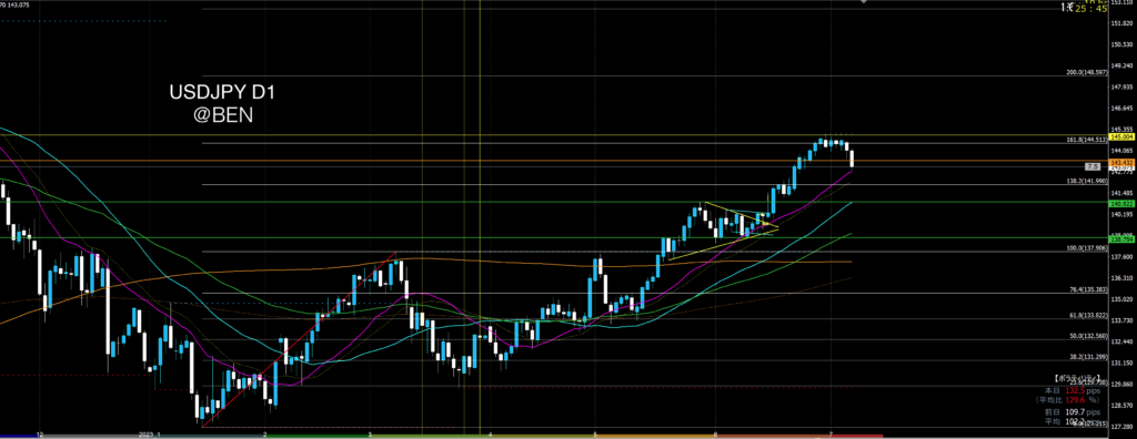 2023.7.6.ドル円は145を超えていけるのか。サイクルは綺麗に揃い始めており米重要指標がここから並び始める。
