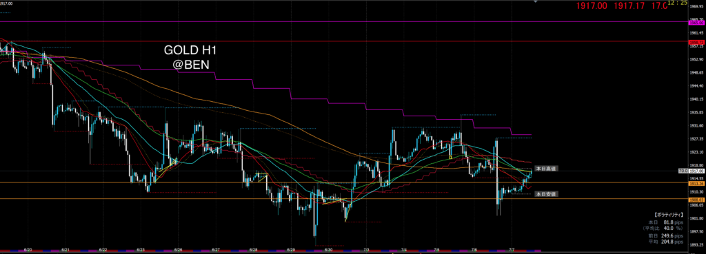 ドル円は跳ね上げ、GOLDは強い勢いで下落。しかし今日の雇用統計もあることから、上位足でみると結果的にレンジ内に収まる動きになりましたよね。